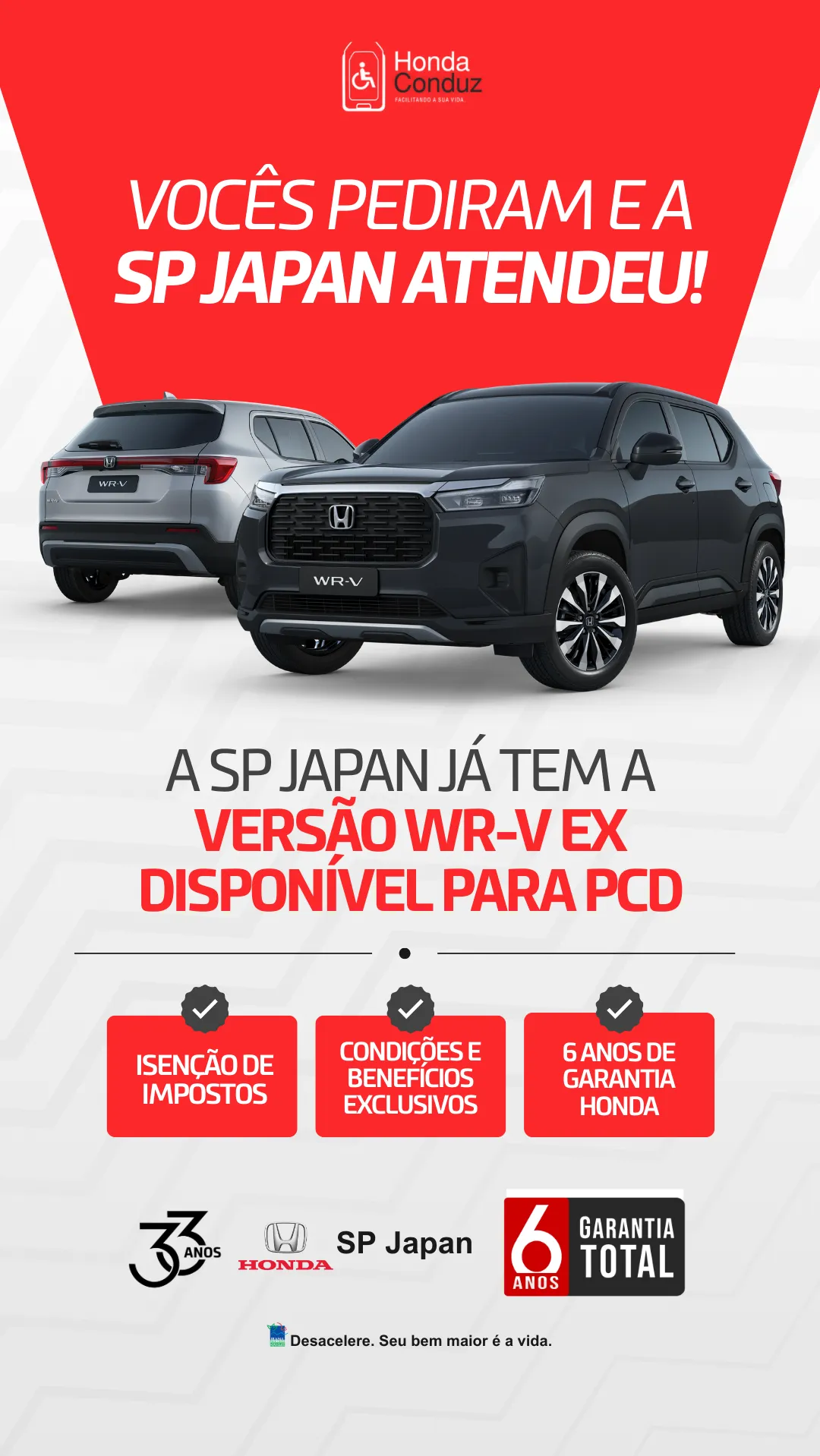 SP Japan. 33 anos entregando credibilidade, excelência e as melhores oportunidades do mercado Honda.